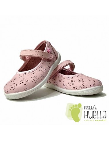 Merceditas o zapatos de piel picada con flores para niñas con pulsera en el empeine de velcro cruzado para una buena sujeción del pie. Son fáciles de poner y las más autónomas no necesitan ayuda de un mayor. Son ideales para los bebes cuando gatean o empiezan a caminar dando sus primeros pasos.