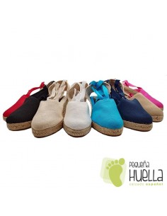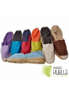 Tallas desde la 38 a la 46 para los chicos y chicas jóvenes y también para sus padres. En PEQUEÑA HUELLA disponemos de más modelos de zapatillas de esparto 100% españolas para niños, niñas, hombre o mujer, planas o con cuña y en muchos colores para que elijas el que más te guste.