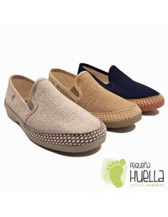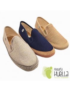 Zapatillas o alpargatas de caballero hechas en la Rioja y cosidas a mano por expertas manos artesanas PASFOR. Son 100% naturales, artesanales y biológicas.