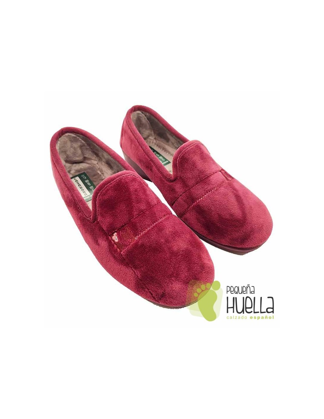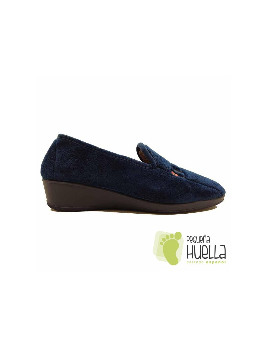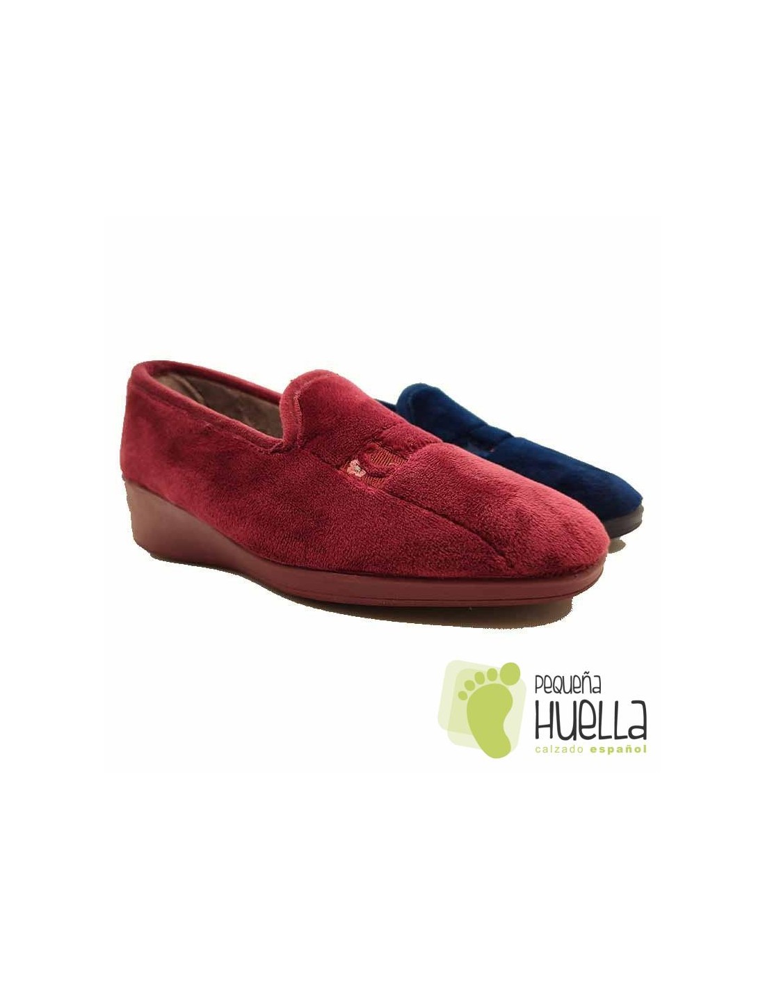 Zapatillas de casa con cuña para mujer cerradas. Alpargatas de andar por casa suaves de suapel y anchas. El calzado perfecto para sentirse cómoda en el hogar, disponibles en azul marino y burdeos.