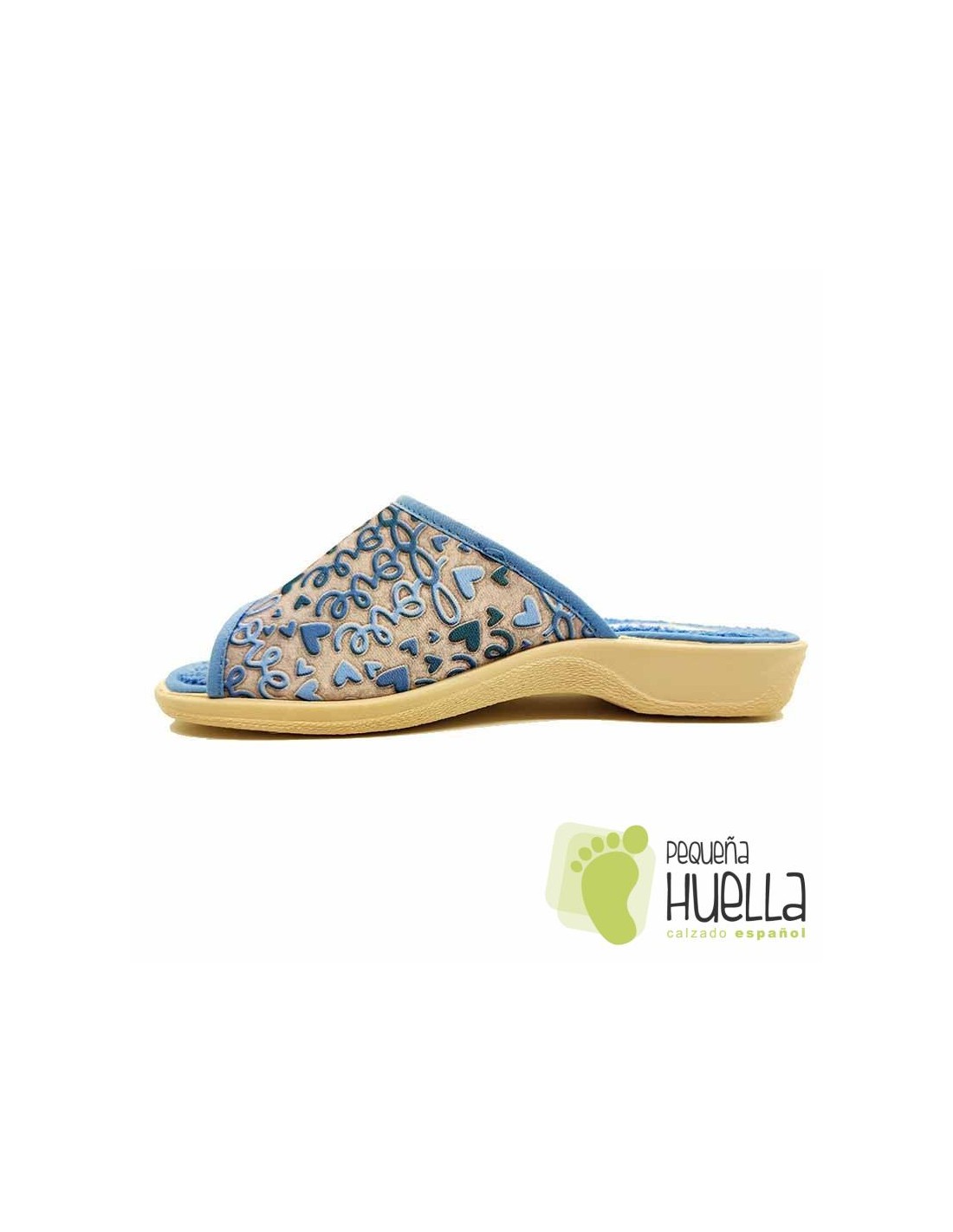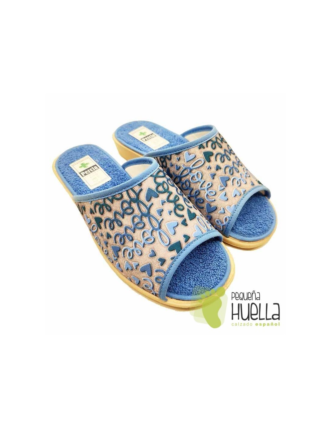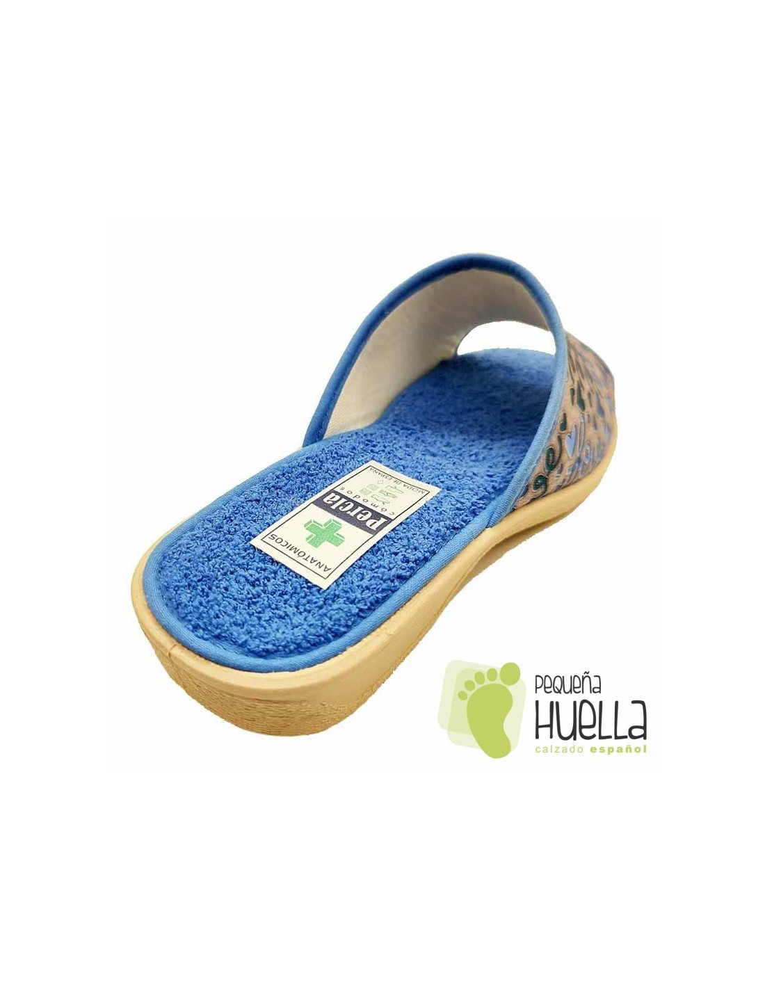 Zapatillas de chica en la playa abiertas por detrás y por delante para andar por casa de mujer en tela de rizo.