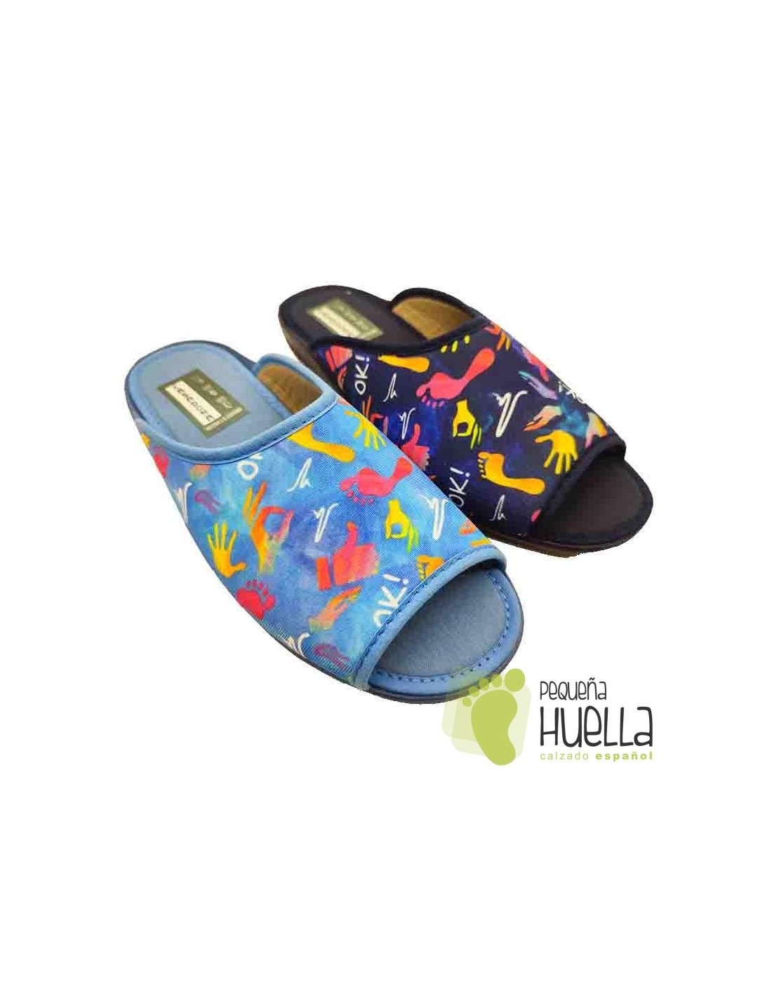 Divertidas zapatillas de tela para mujer abiertas por delante y detrás para los días de primavera y verano.