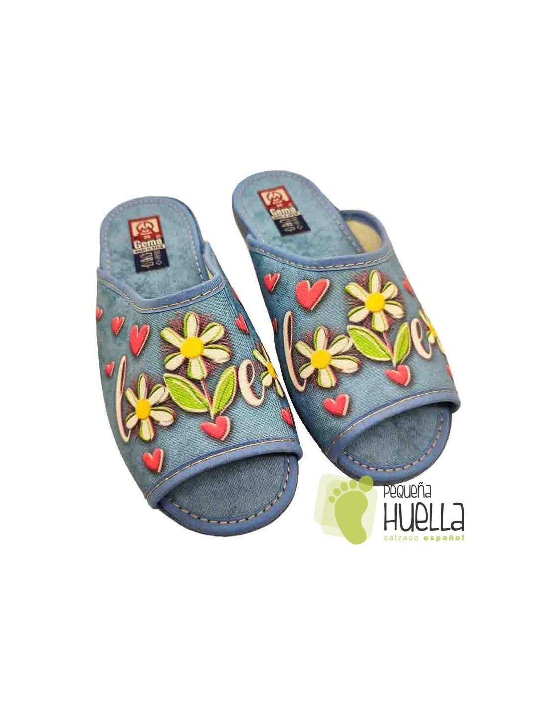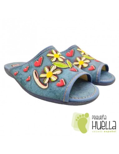 Zapatillas de señora con love de flores y con corazones para el verano