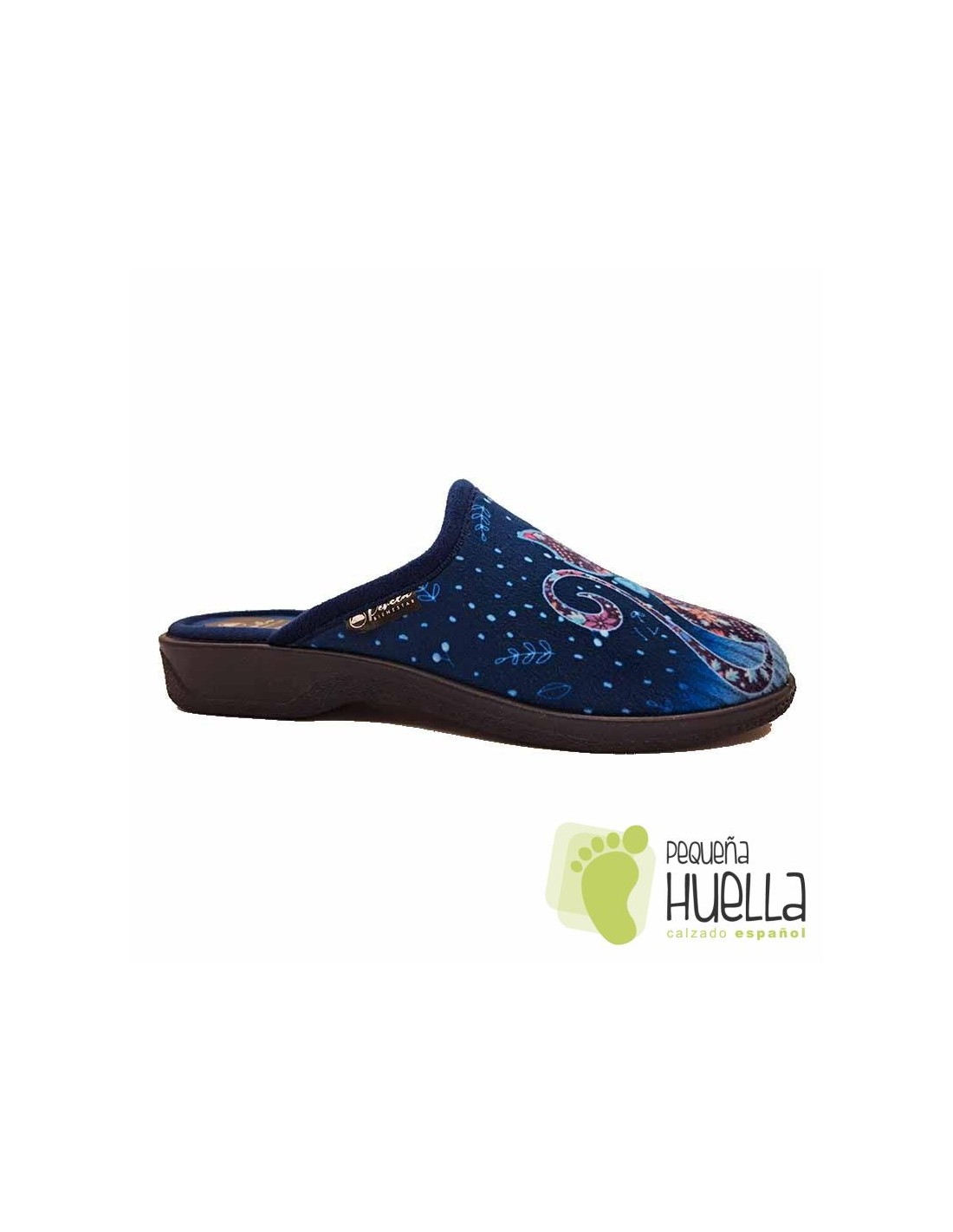 Zapatillas anatómicas tipo zuecos azules para estar en casa de chica. Interior se suapel, muy suaves y cómodas.