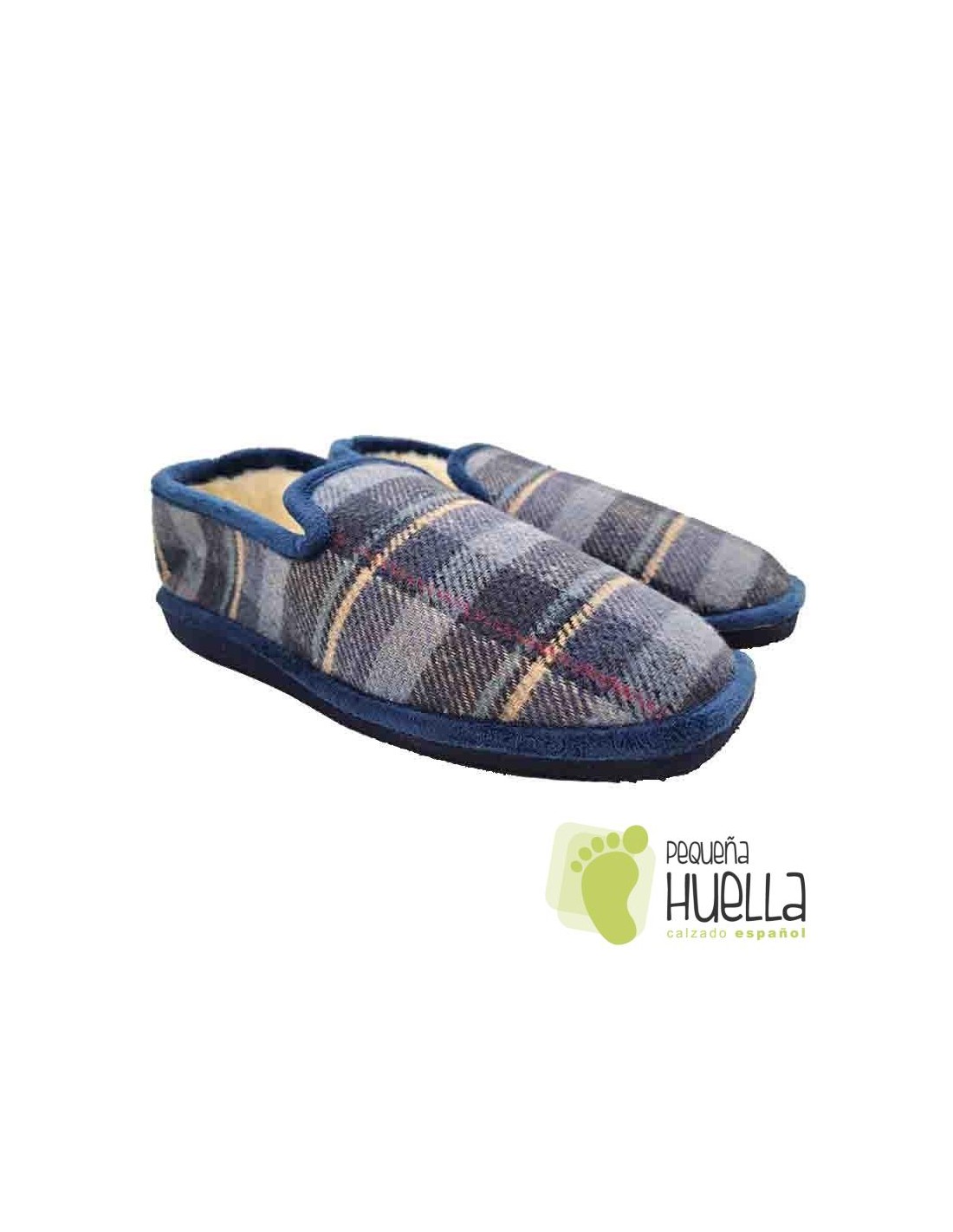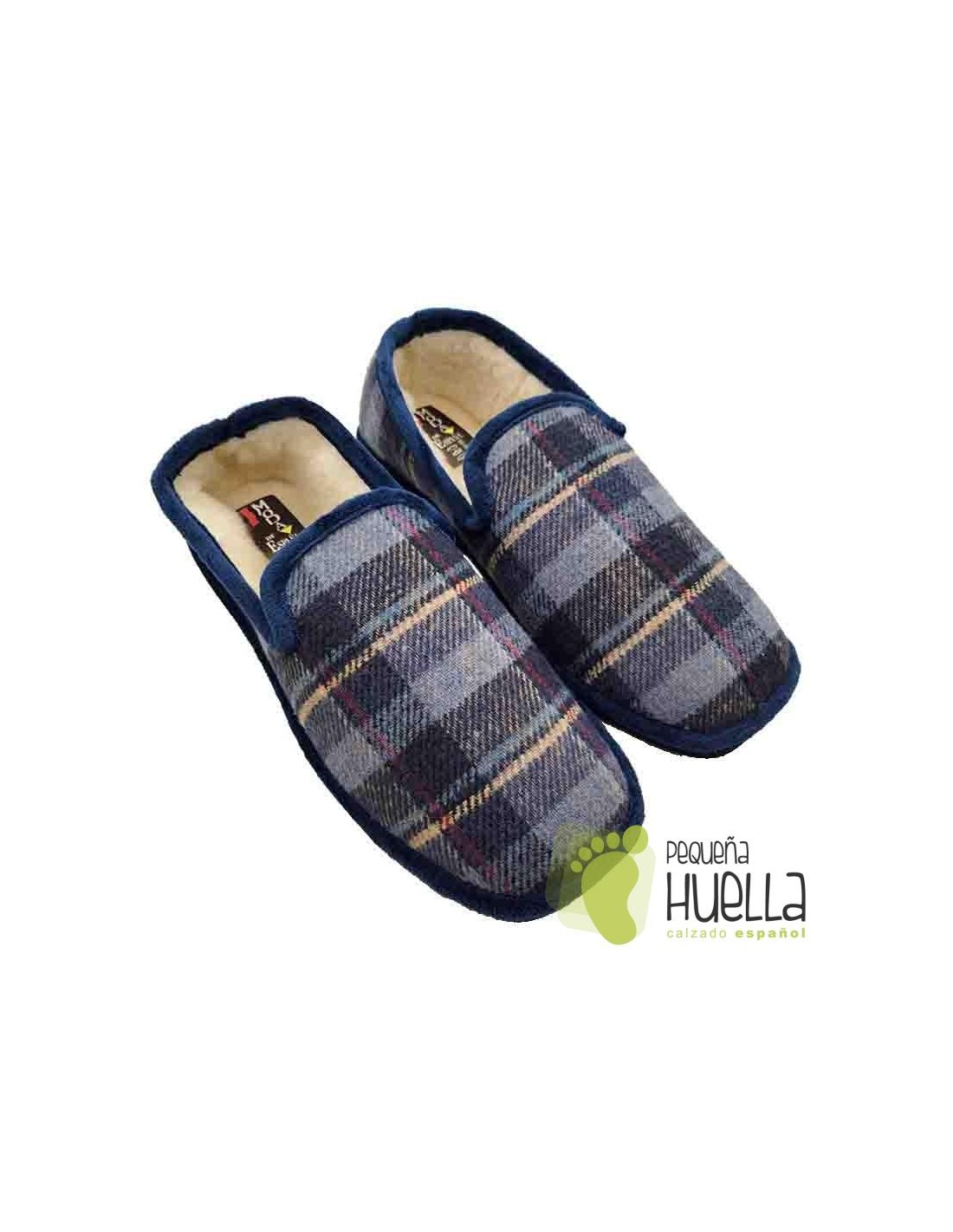 Zapatillas con borreguillo de cuadros para hombre de andar por casa cerradas. Las mejores babuchas de caballero para los días fríos de invierno, con el interior forrado de borreguillo muy suaves, cómodas y calentitas.
