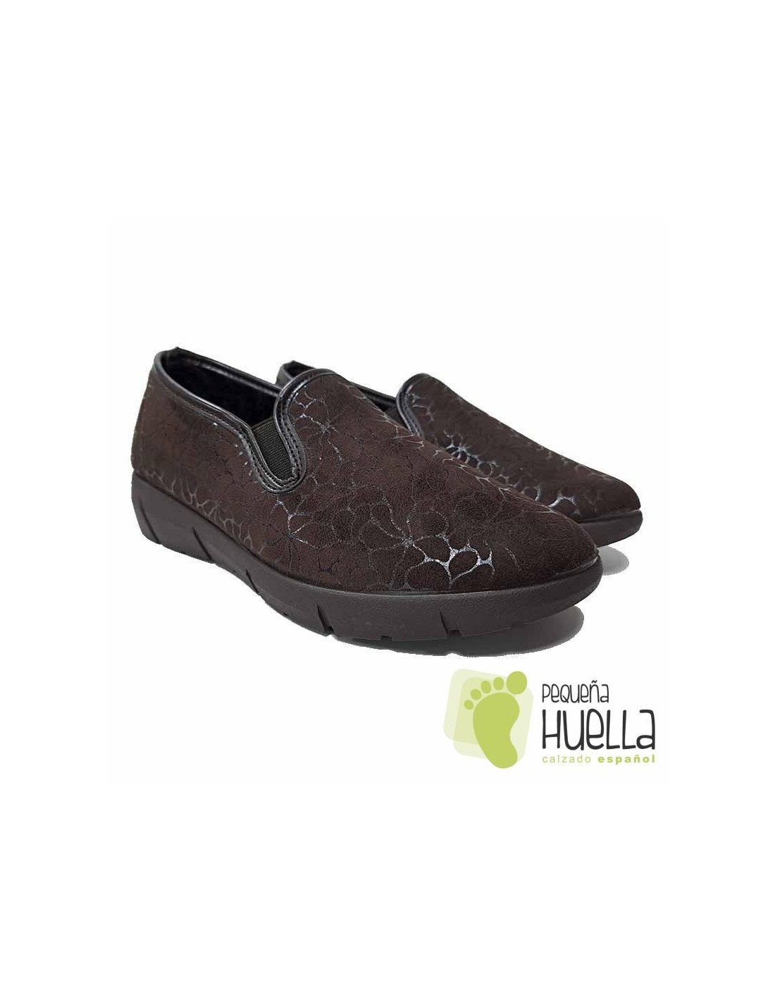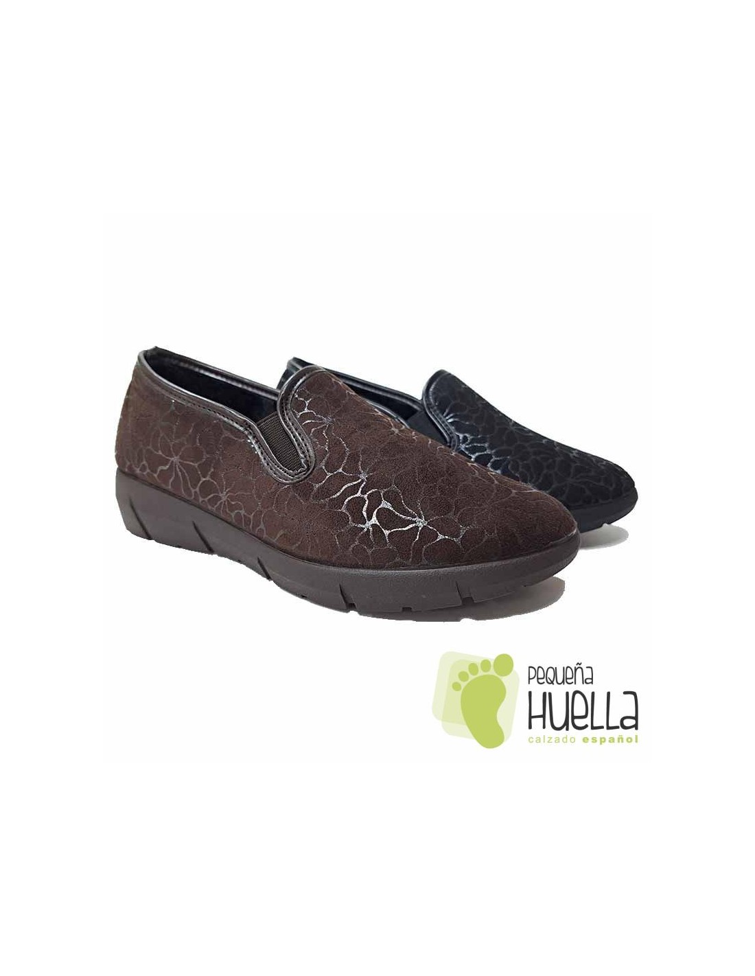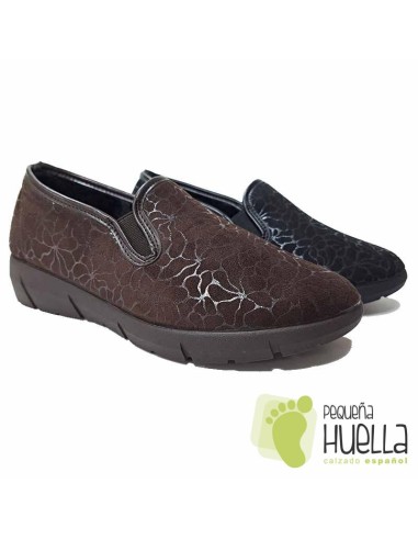 Zapatos de tela mocasines suaves y cómodos de calle para señoras con goma a los lados