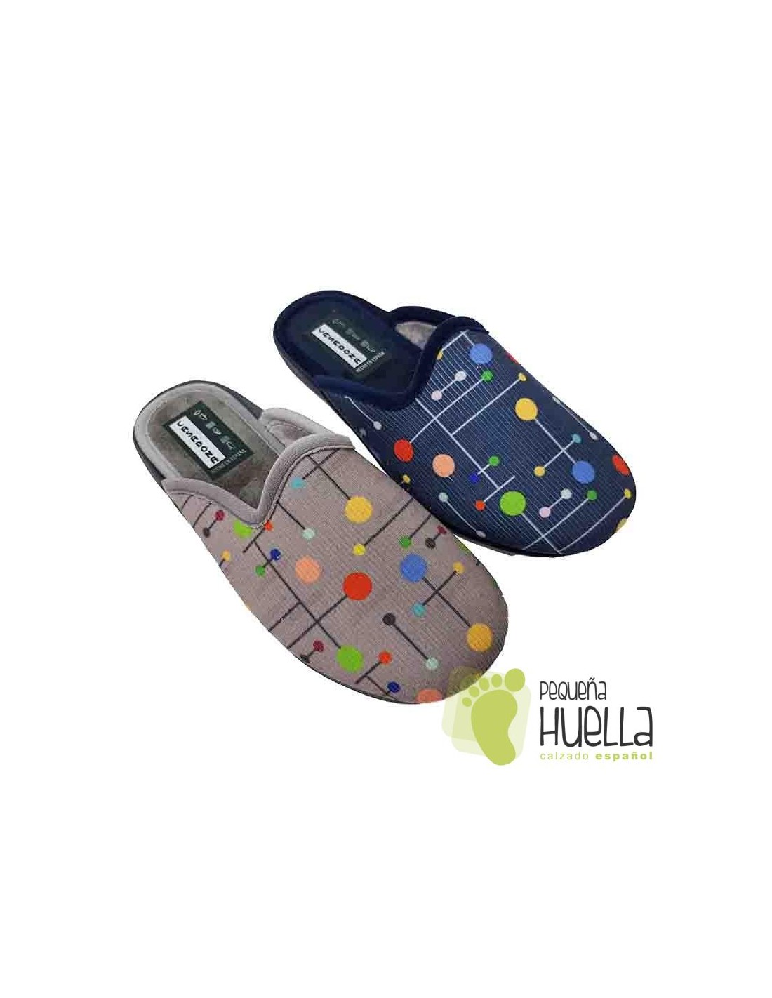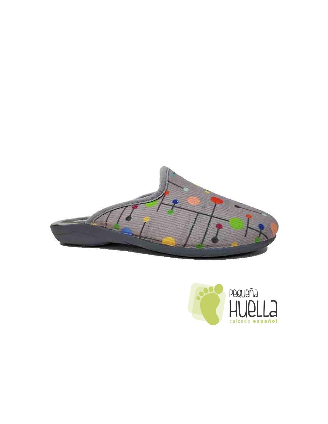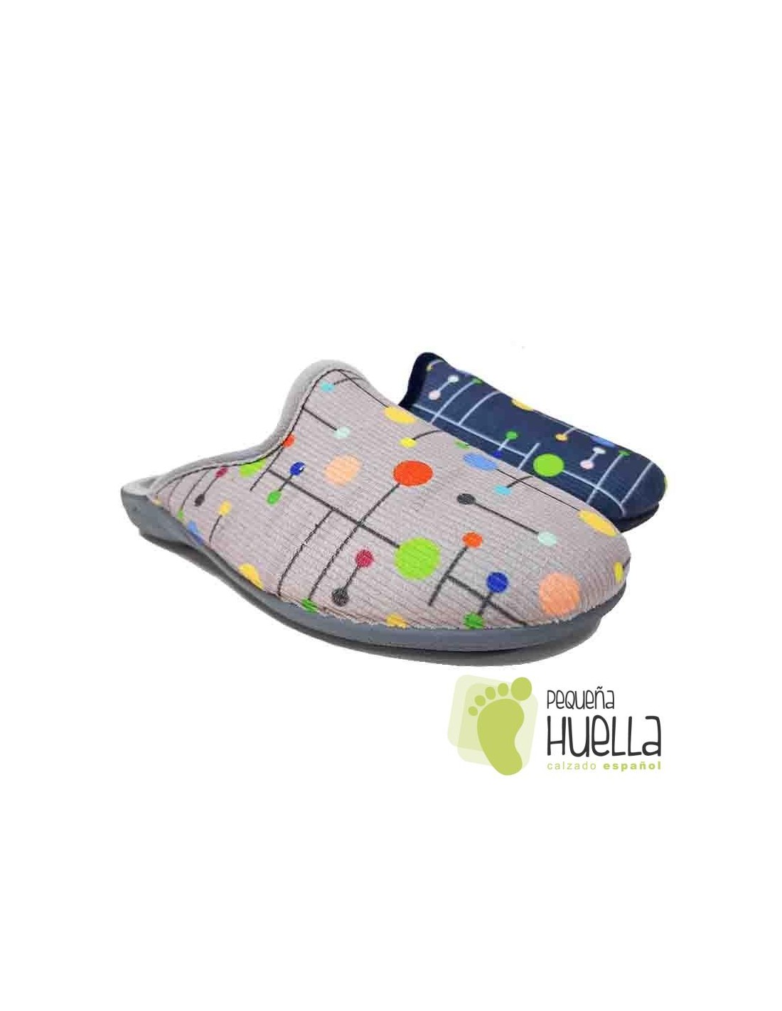 Bonitas chinelas estampadas. Zapatillas bajas destalonadas para señora en suave suapel. Confortables y calentitas para los días fríos de otoño e invierno.