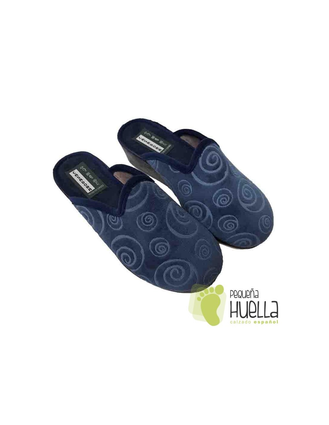 Zapatillas abiertas por el talón confortables con cuña para mujer de invierno.