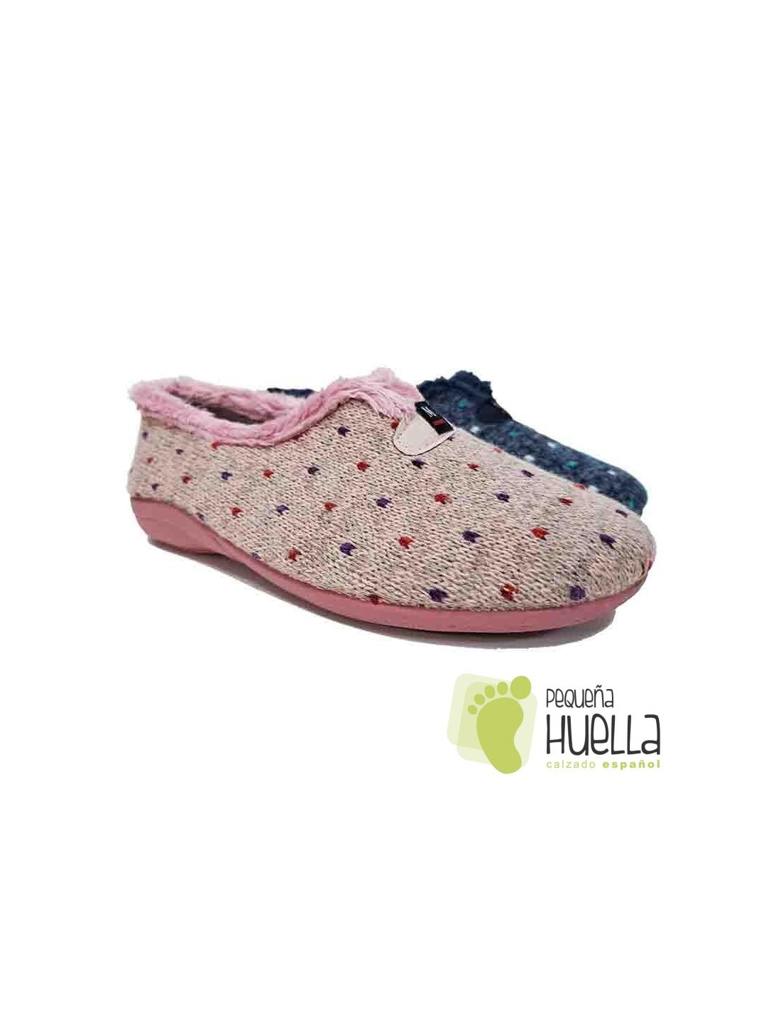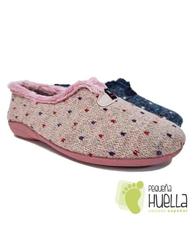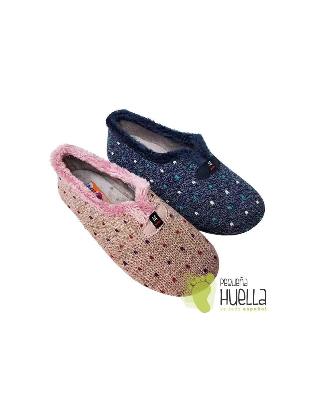 Chinelas fabricadas 100% en España por MUYTER. Fabricante de calzado de Albacete. Modelo lunares o topos 372