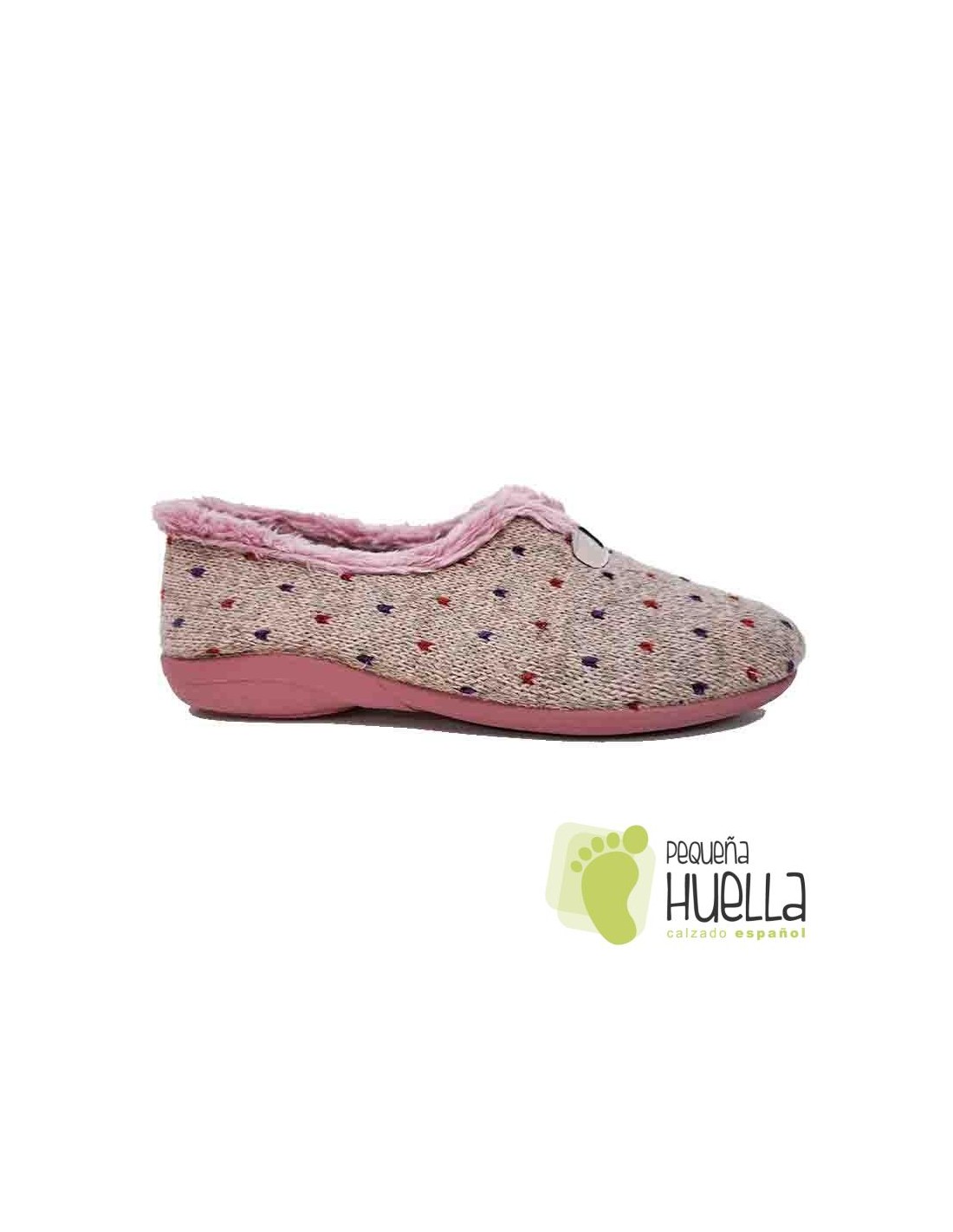 Zapatillas para señora de estar en casa con cuña baja. Cerradas en suapel muy suave . Cómodas y calientes para los días más fríos del invierno y con una correcta transpiración.