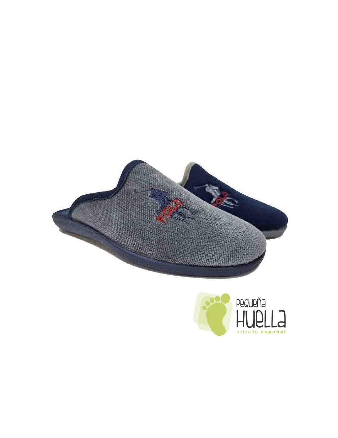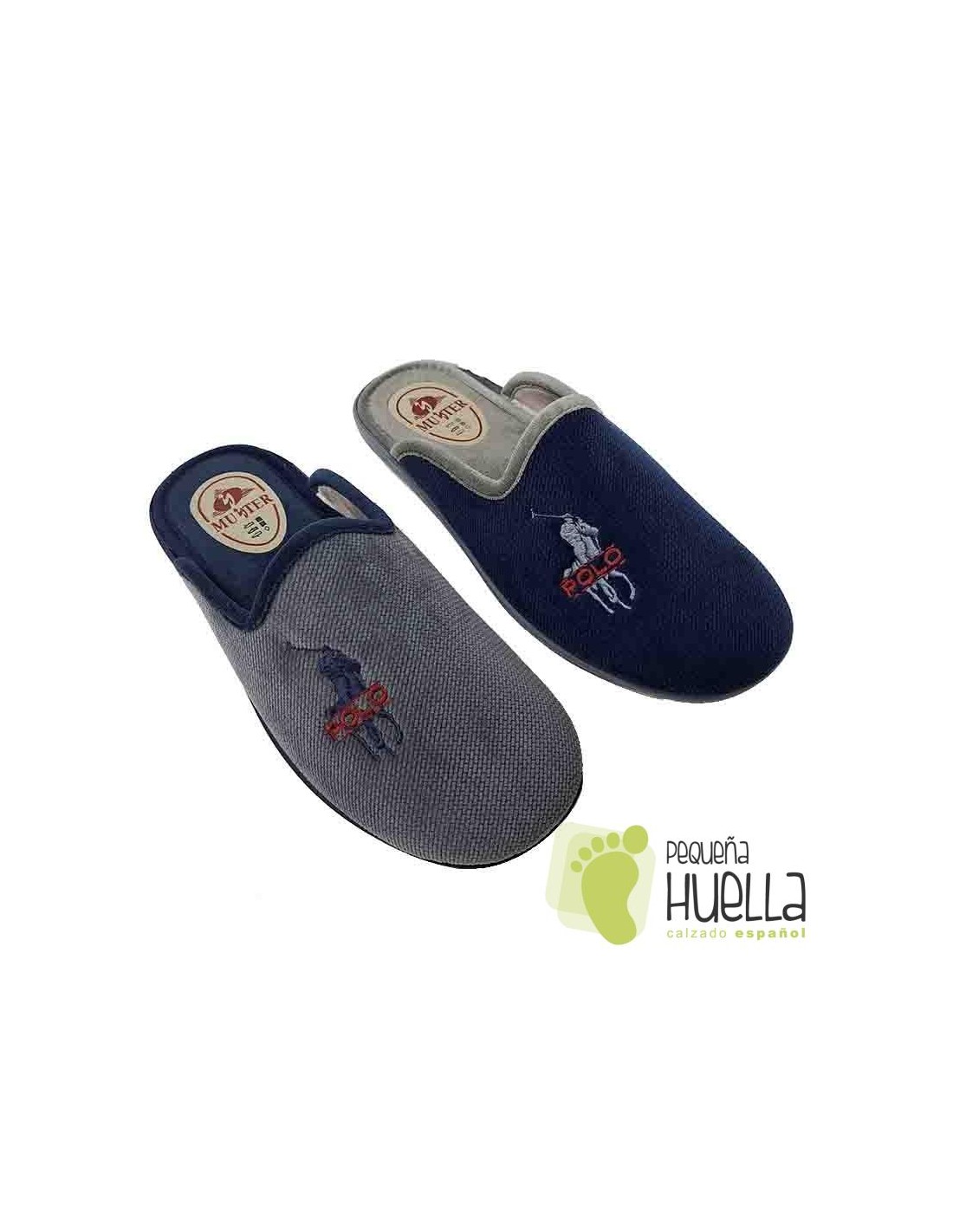 Suaves zapatillas Polo para estar en casa de hombre hechas en suapel calentito para la temporada de otoño e invierno. Con piso de caucho natural antideslizante. Muy elegantes y confortables, abiertas por detrás.