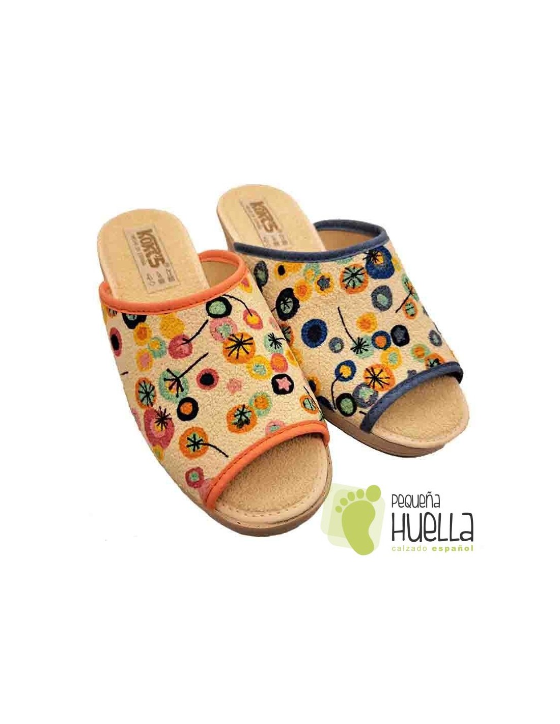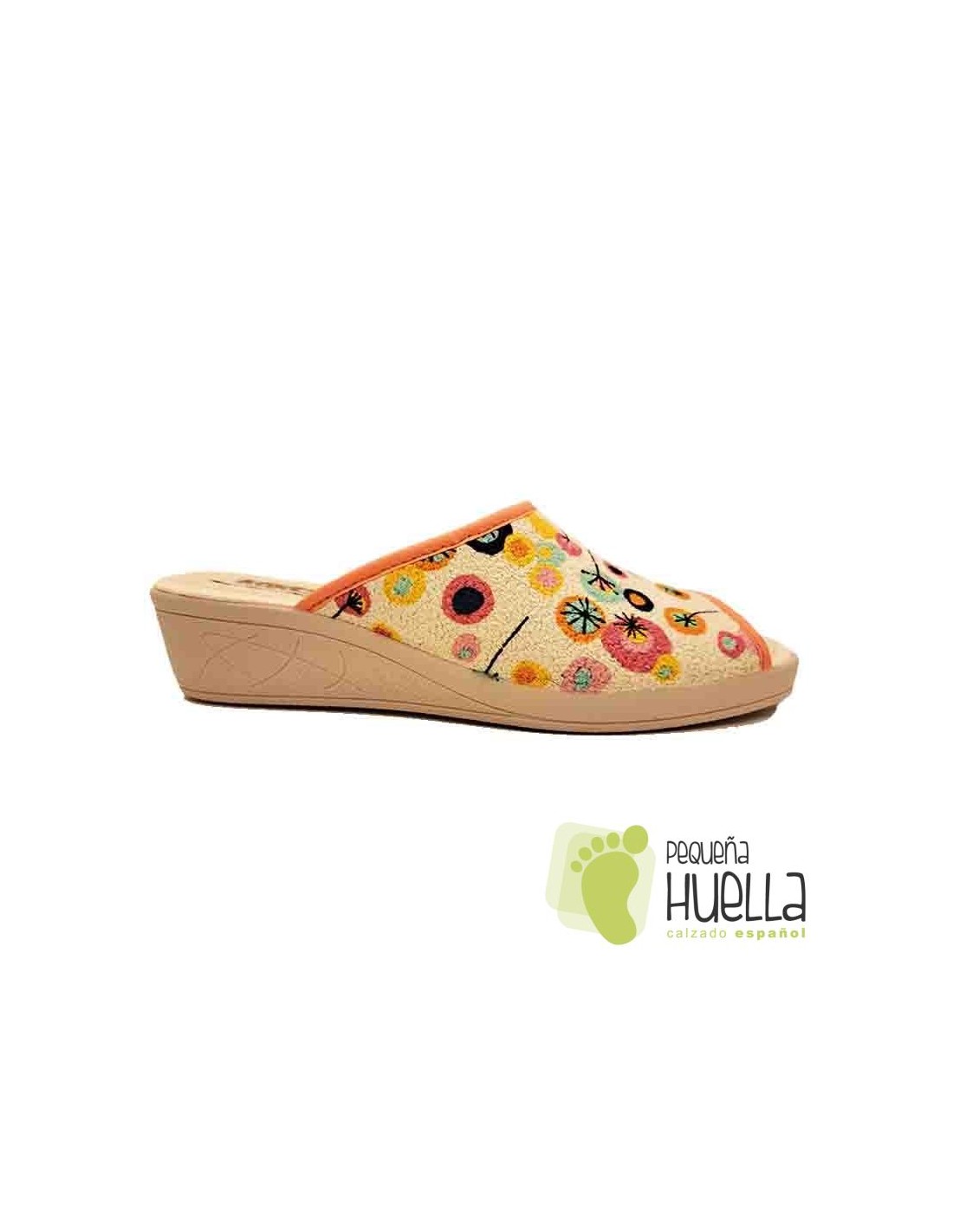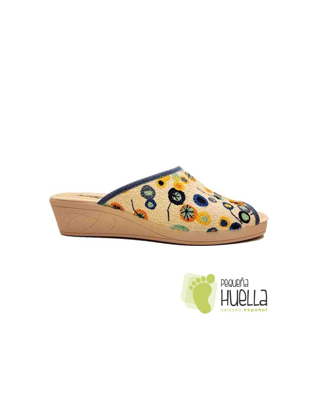 Cómodas zapatillas anatómicos de toalla para señora con cuña de caucho natural.
