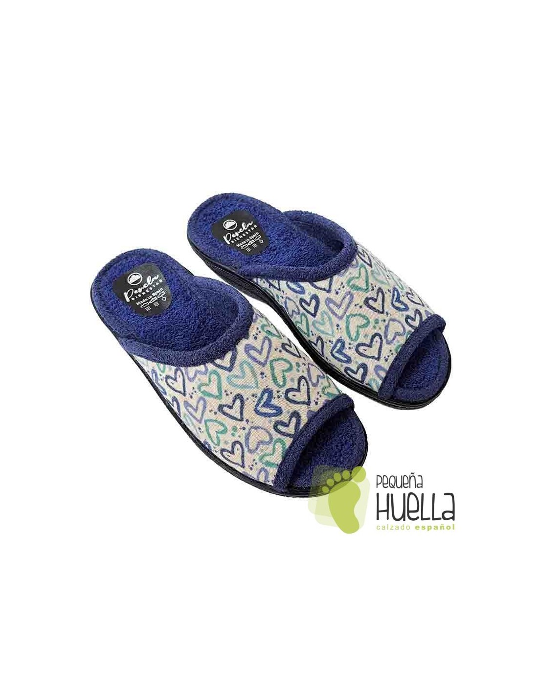 Zapatillas de corazones abiertas por detrás y por delante para andar por casa de mujer.