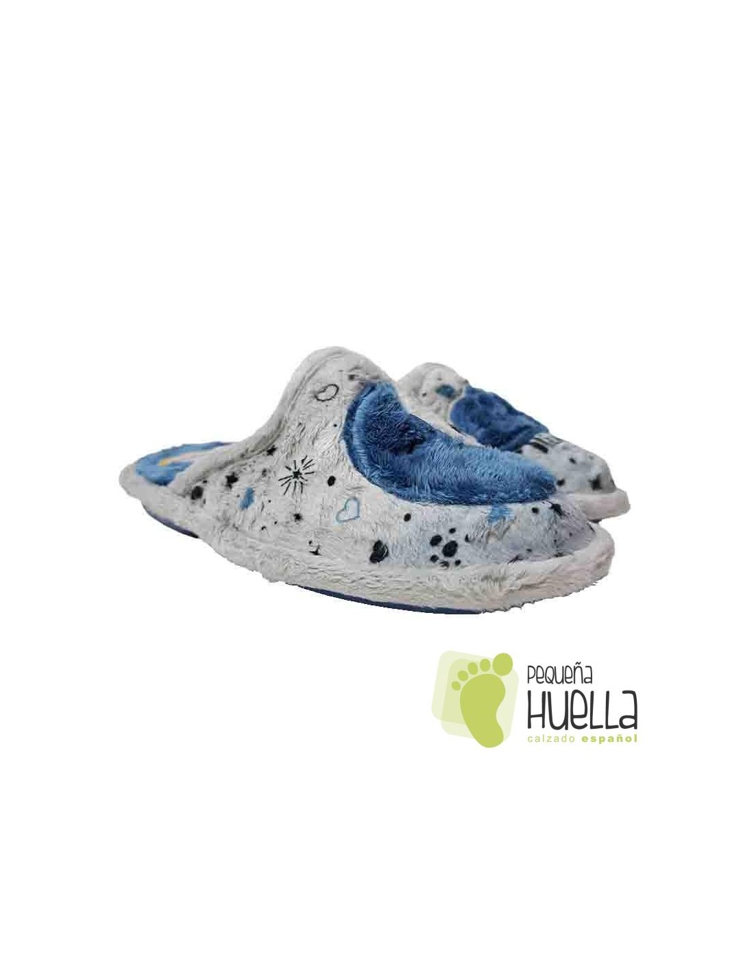 Zapatillas de casa para mujer con decoración de dulces sueños sobre el empeine y lunares.