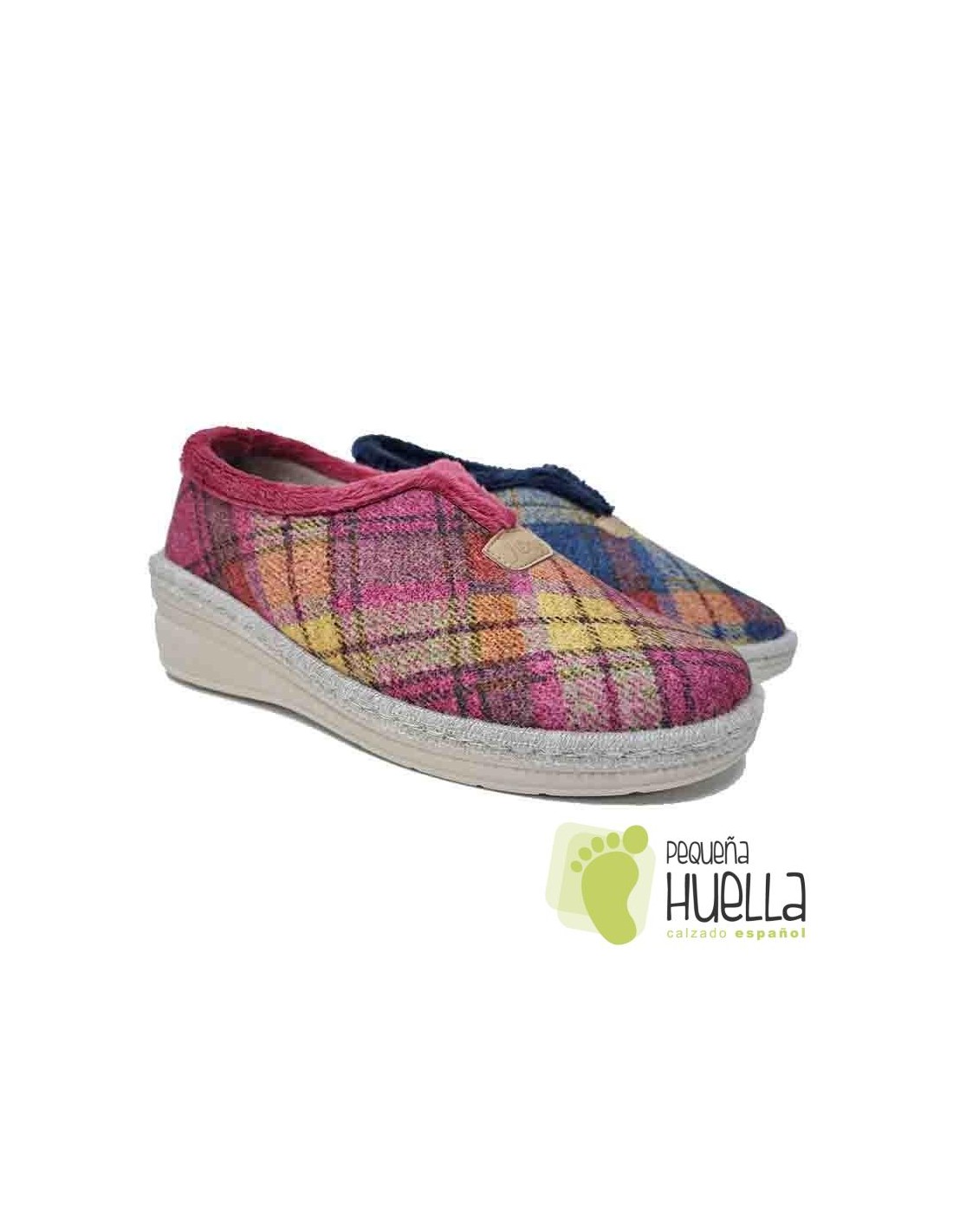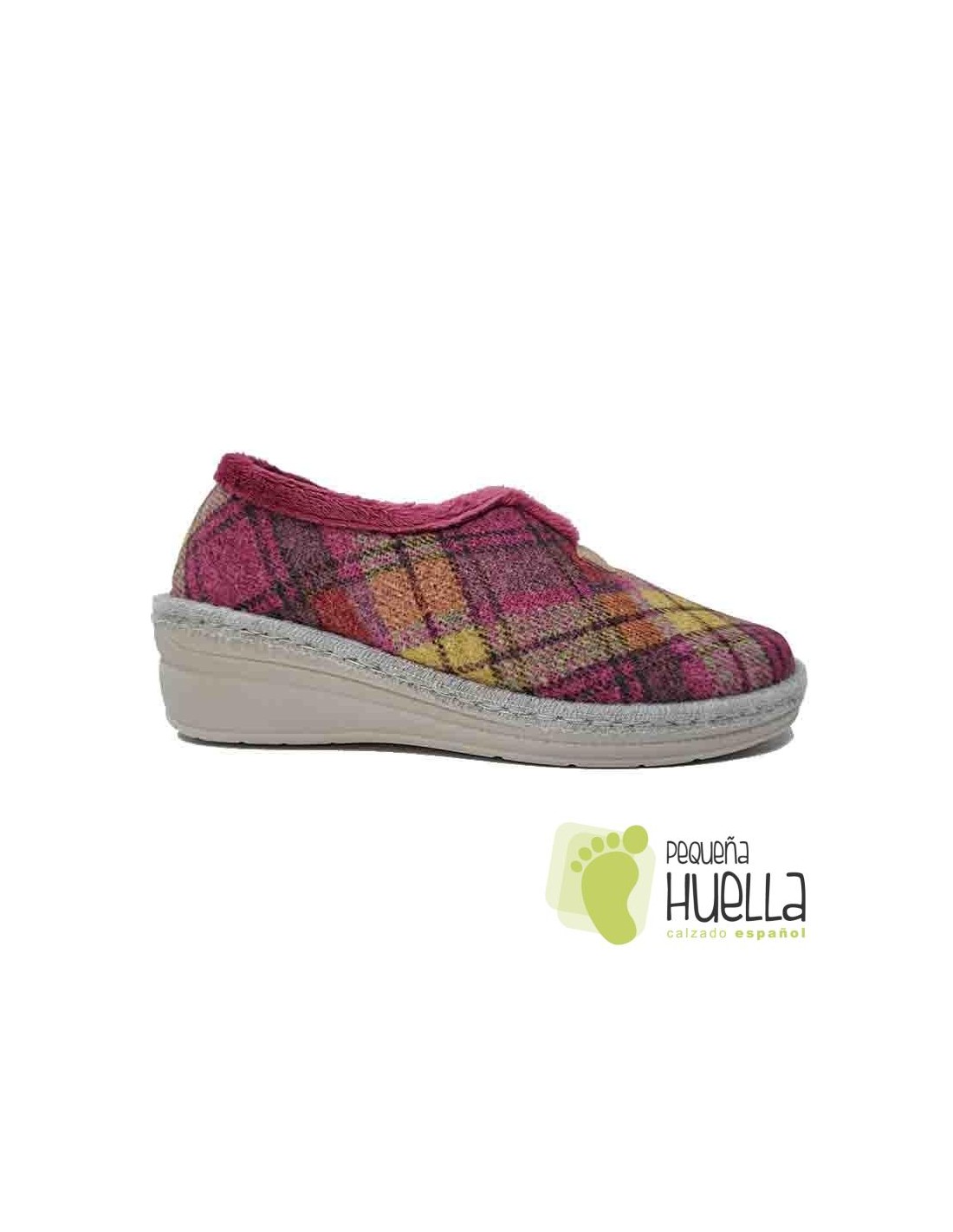 Zapatillas plantilla blandita para casa cerradas con cuña de goma.