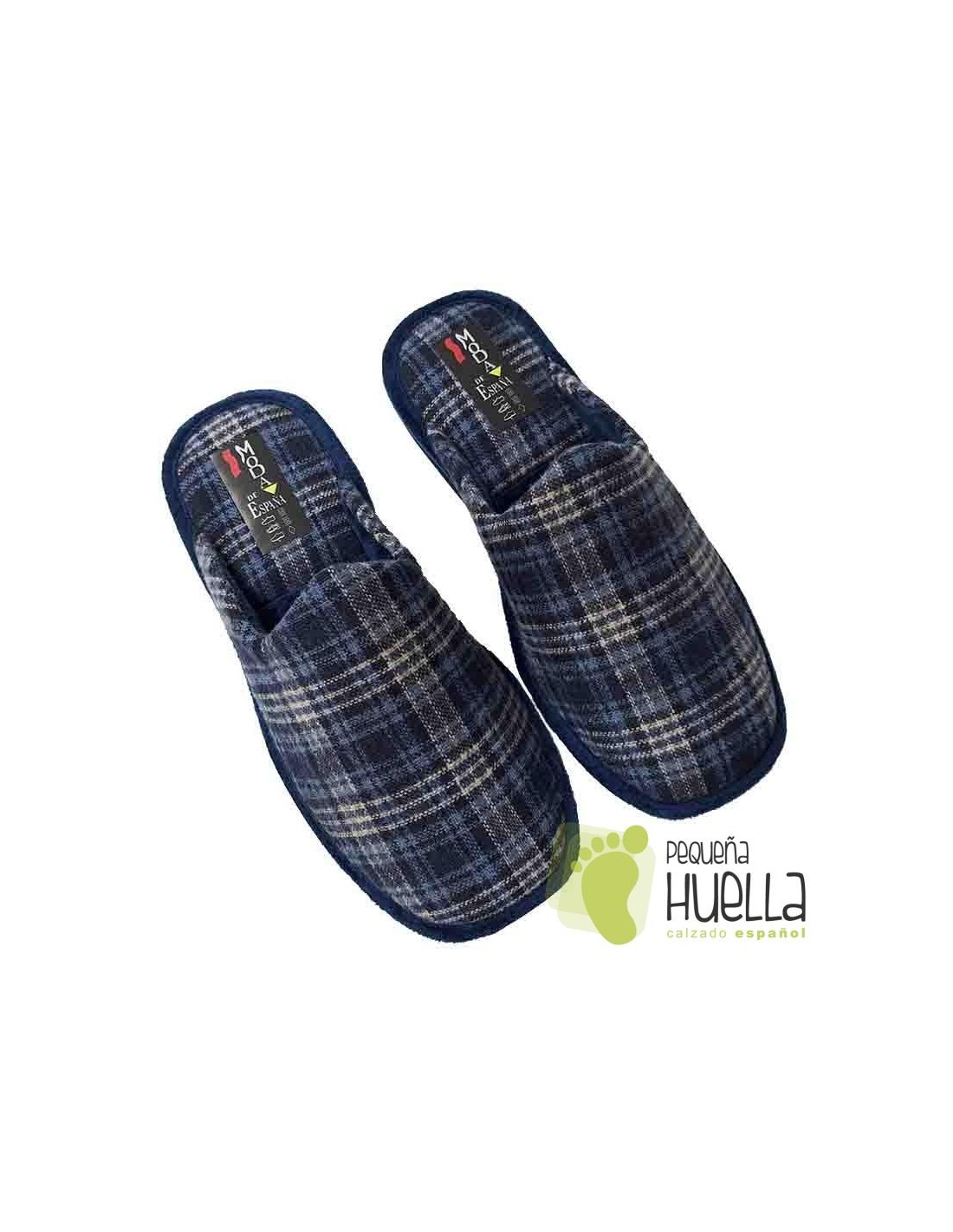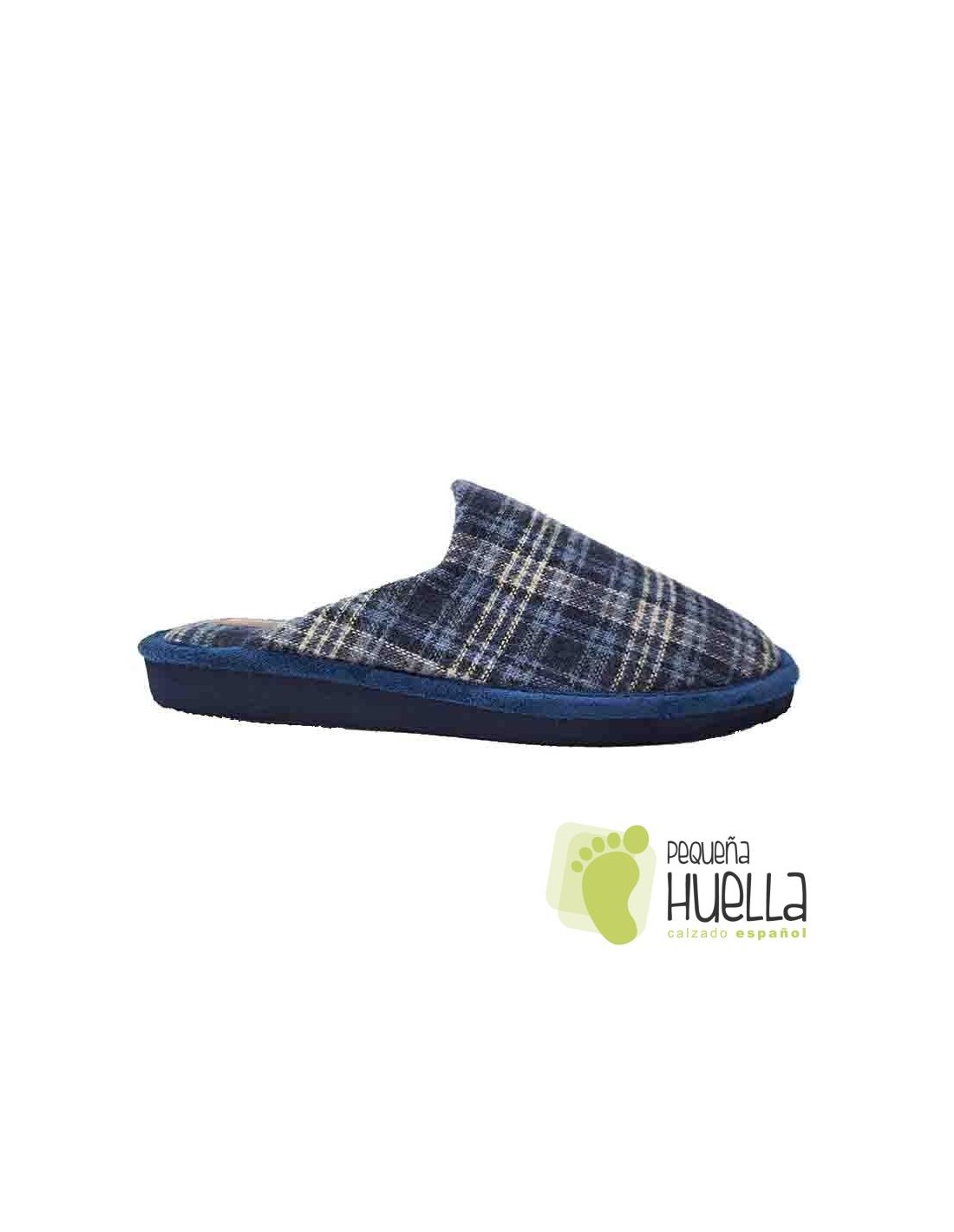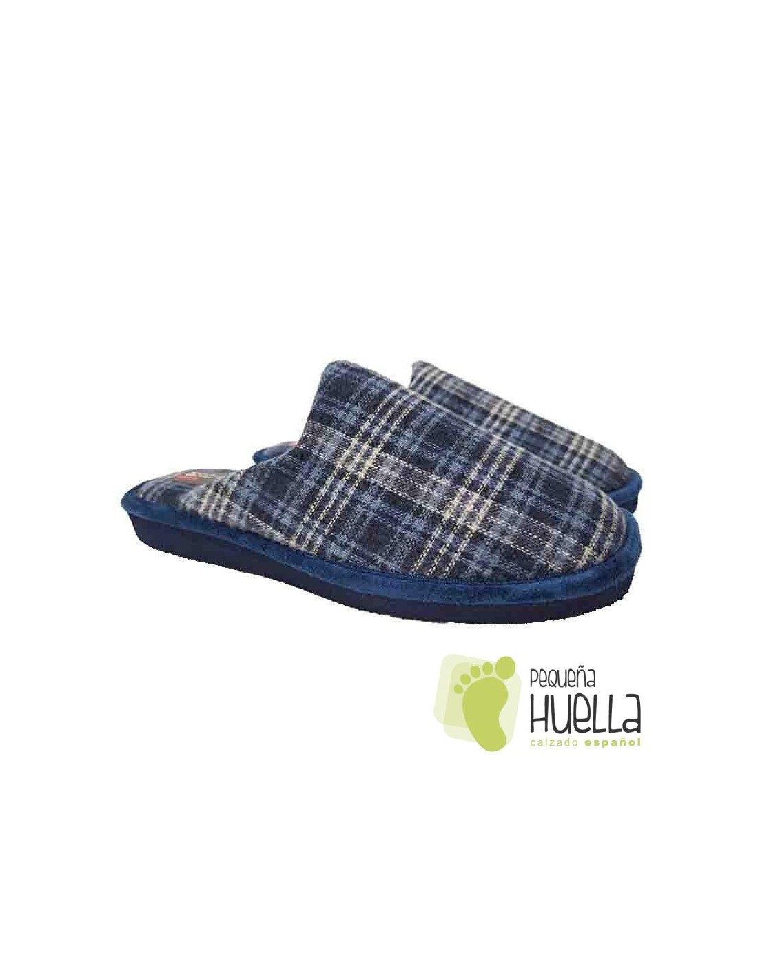 Zapatillas de cuadros para hombre de andar por casa abiertas por detrás.