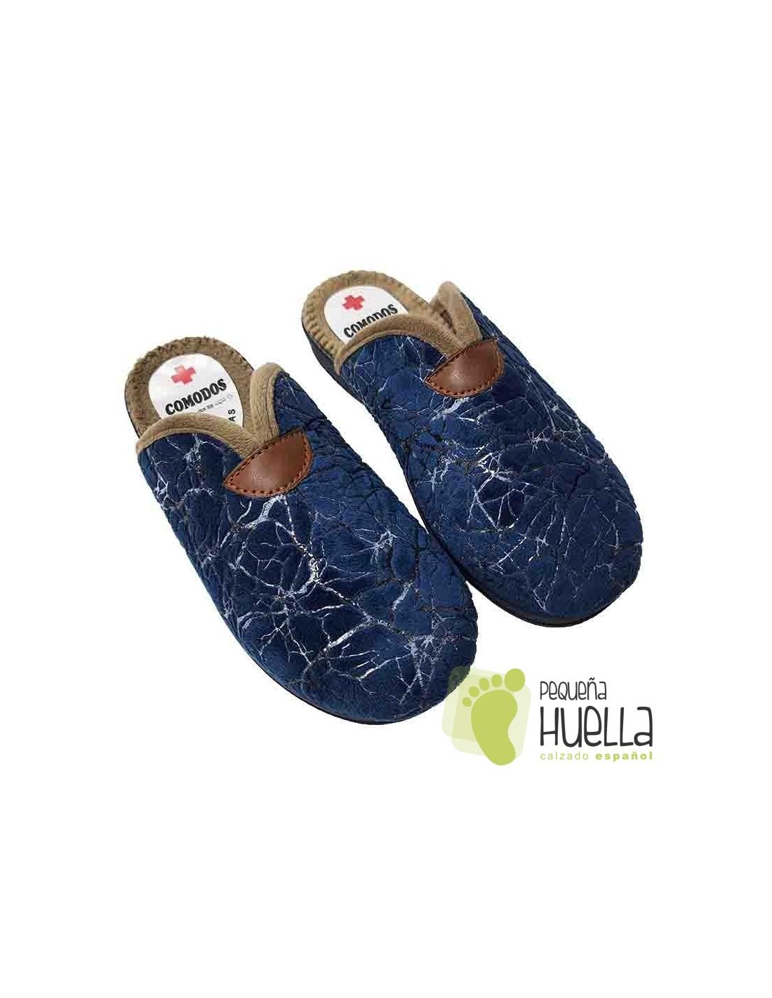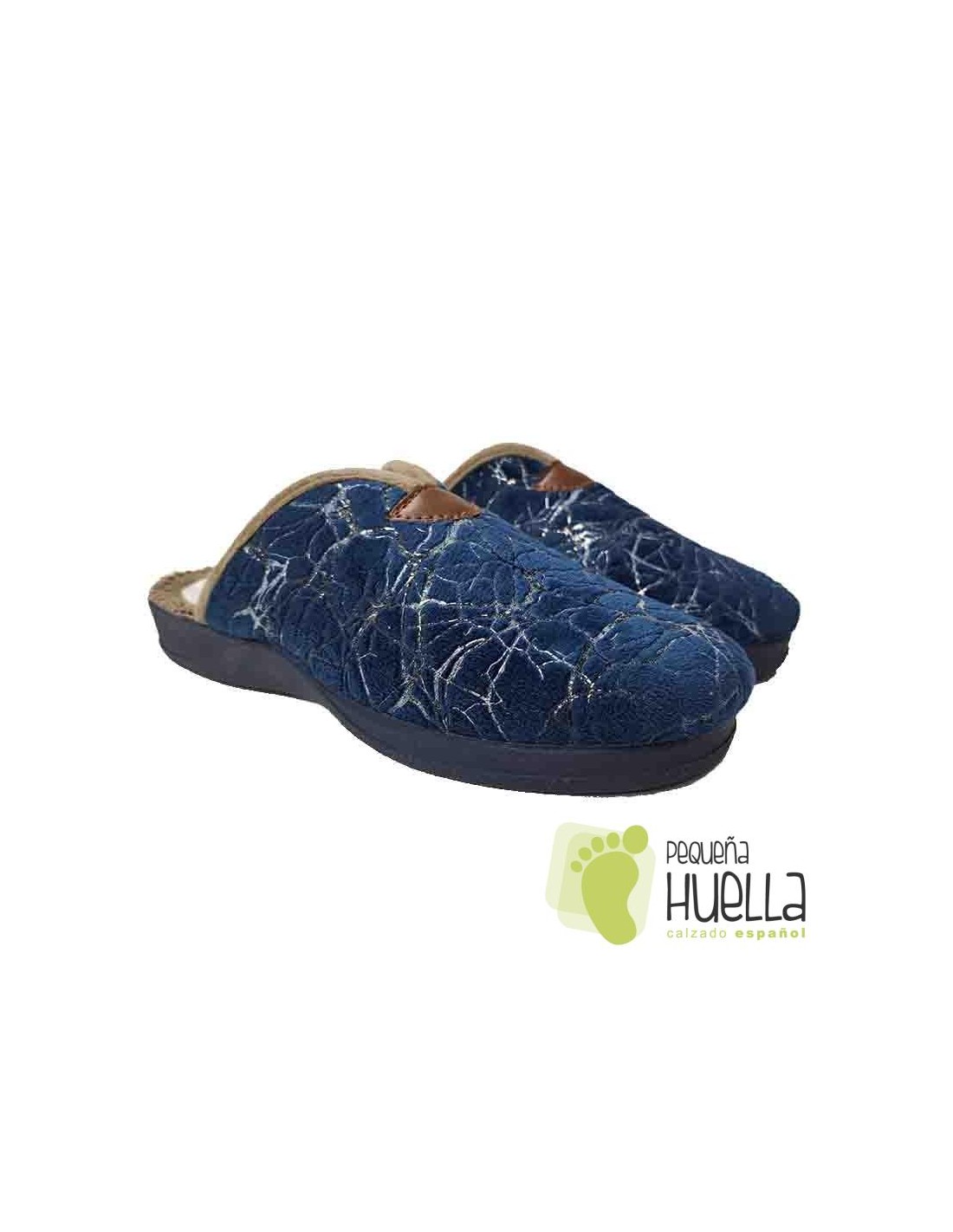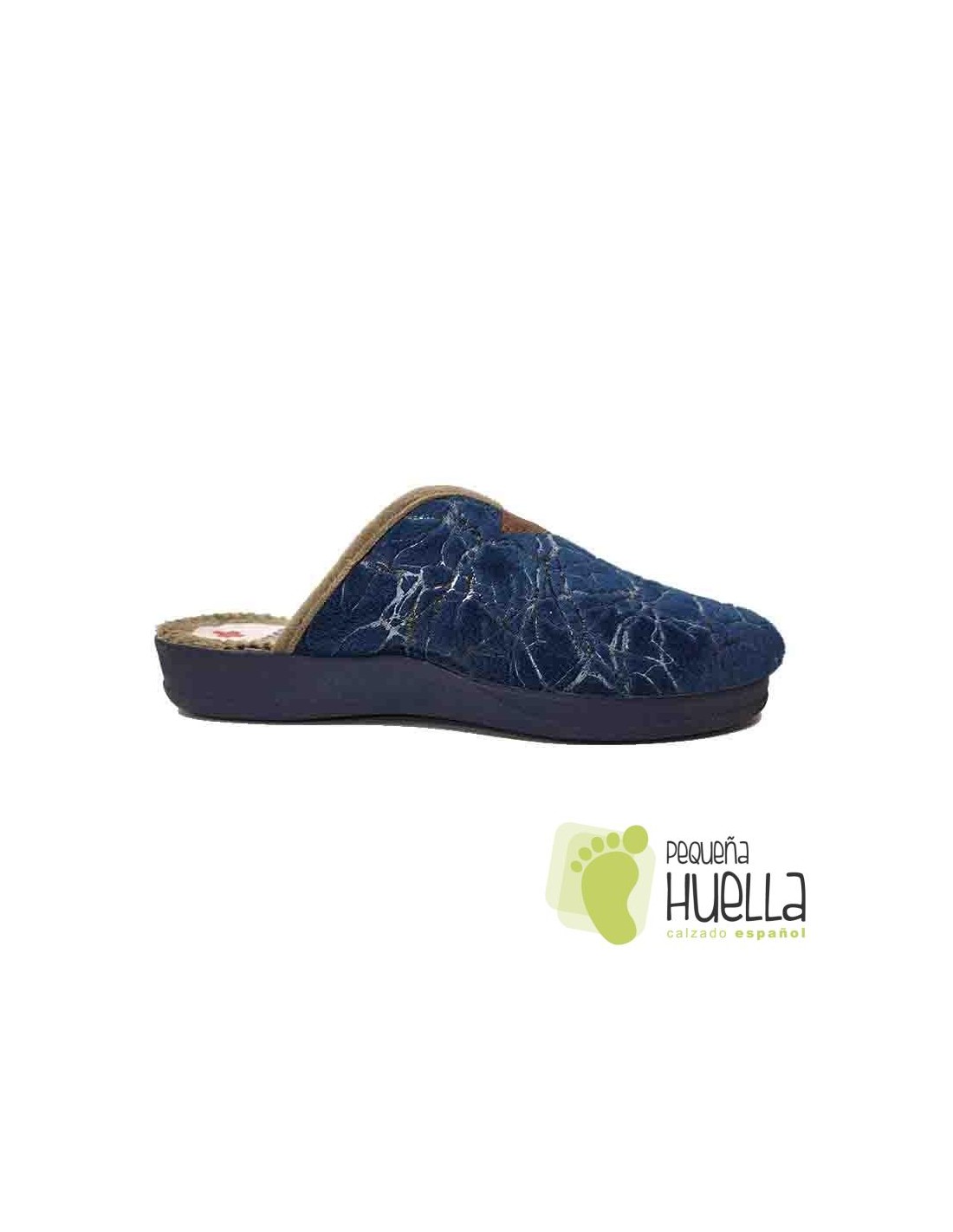 Zapatillas de casa azules anatómicas para señora abiertas en el talón.