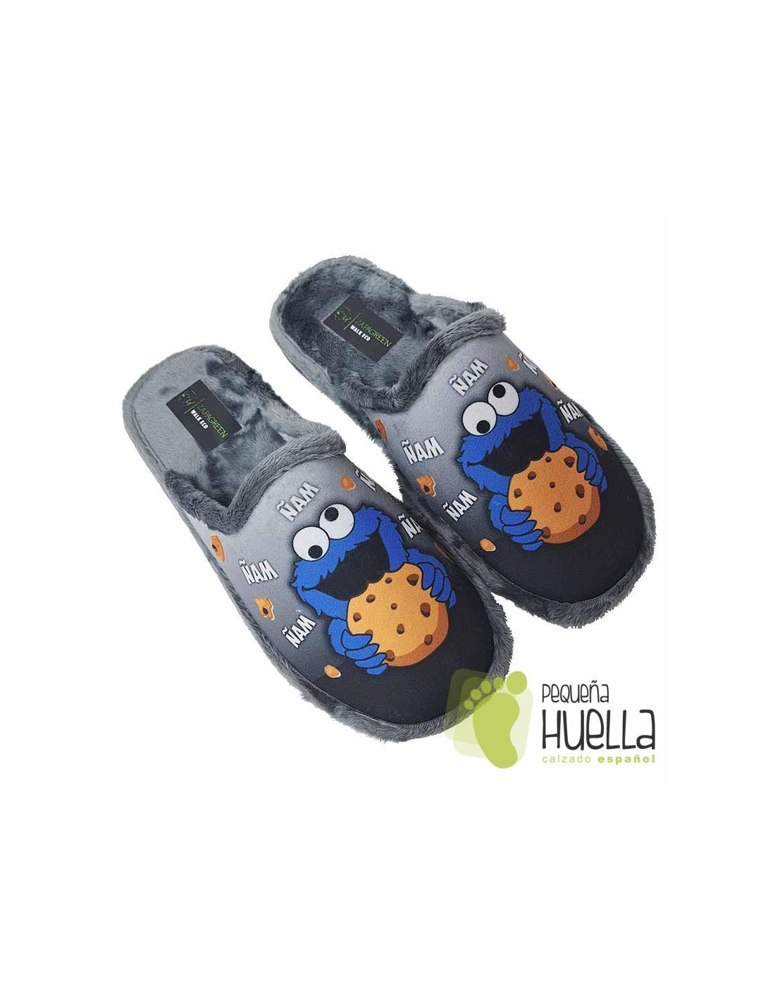Chinelas grises monstruo de las galletas de para invierno , Divertidas y elegante diseño.