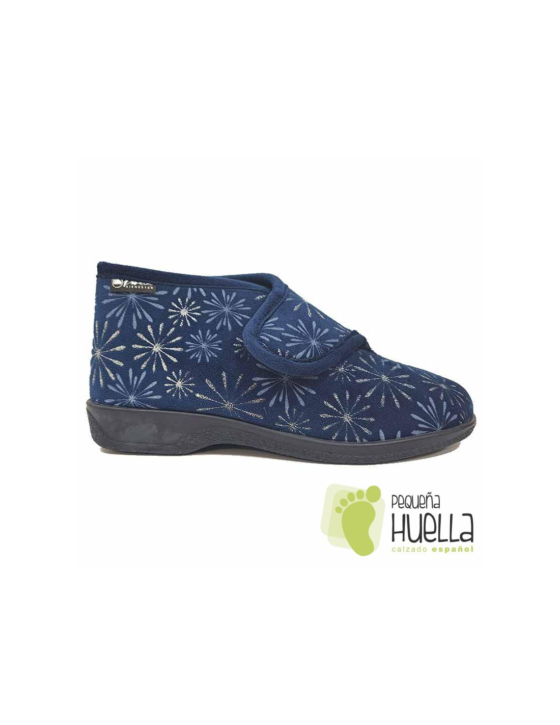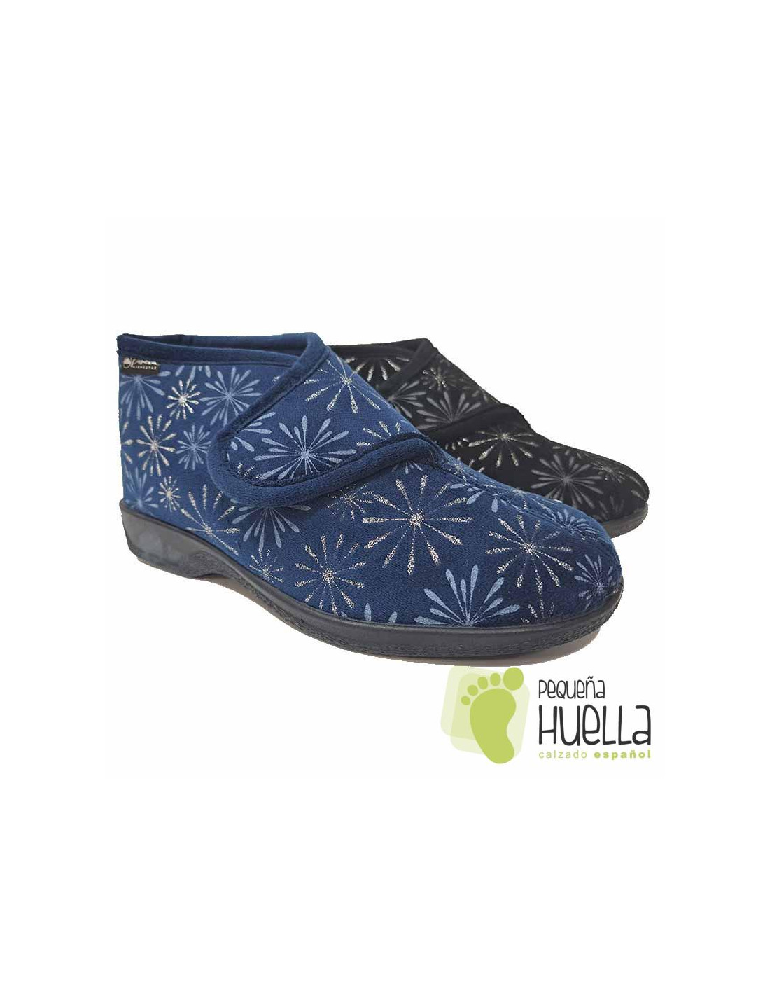 Botines de tela estampada especiales para pies sensibles, producto muy demandado por señoras mayores para estar en casa.